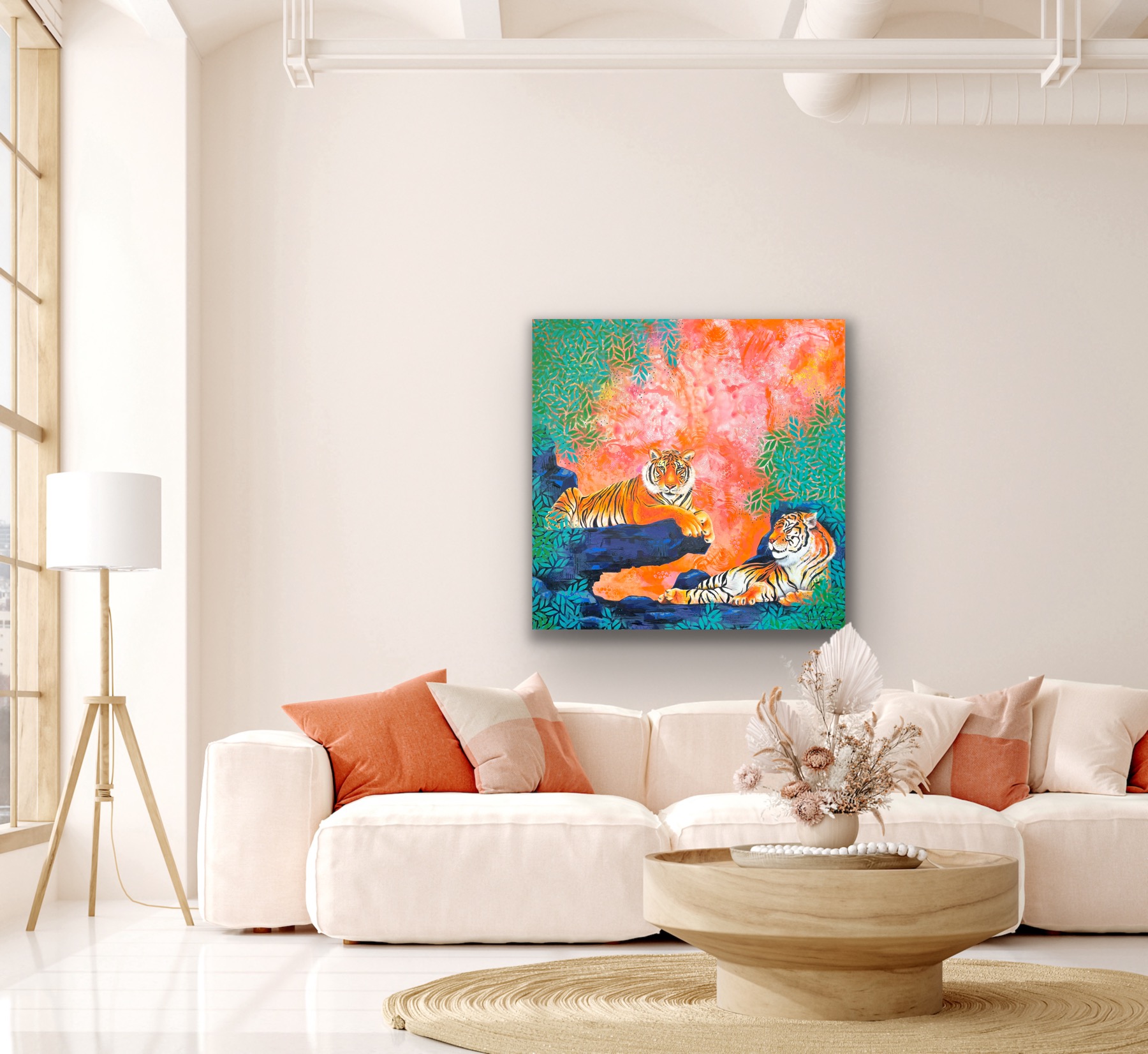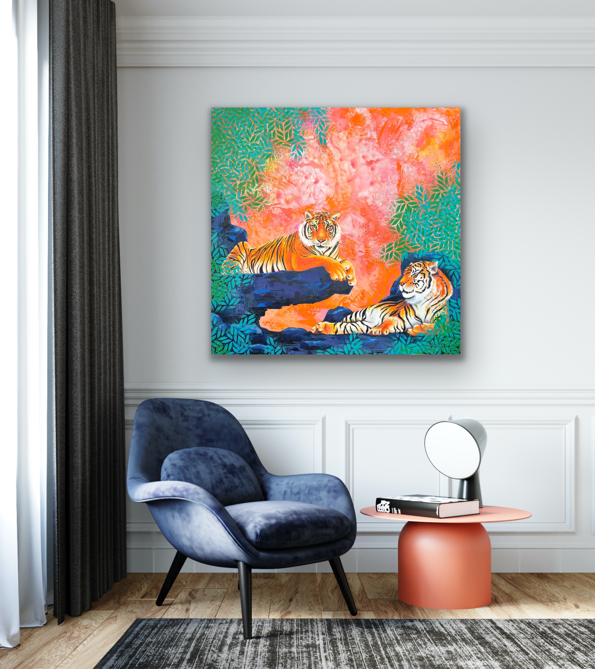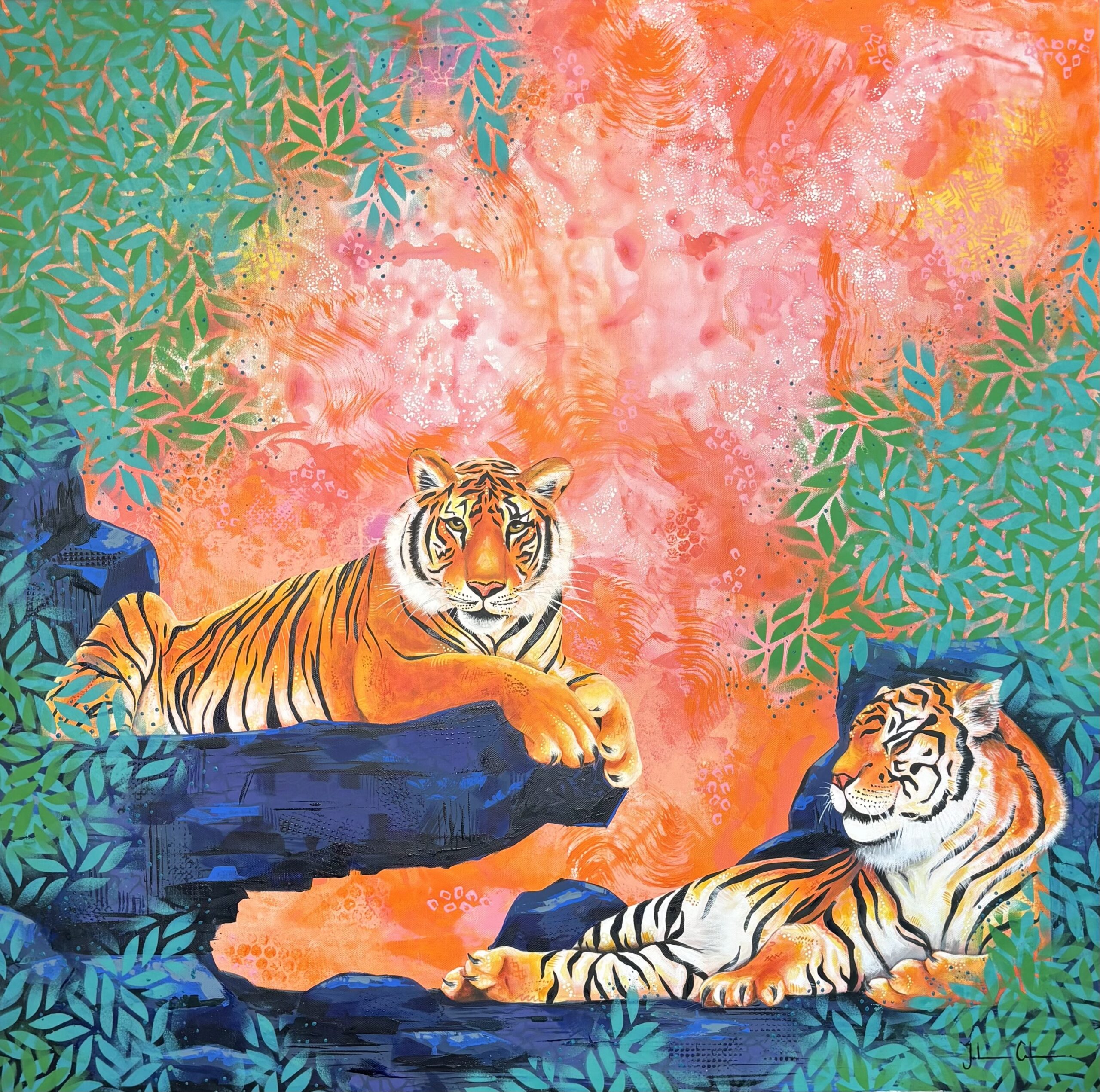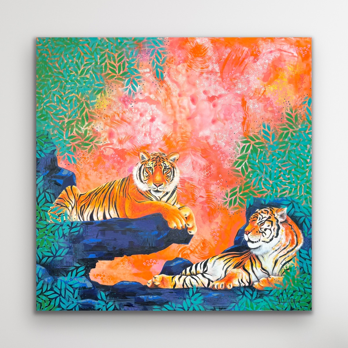 Détente majestueuse, 2025 Technique mixte sur toile (acrylique, aérosol) 36 x 36 in – 91.4 x 91.4 cm 620$